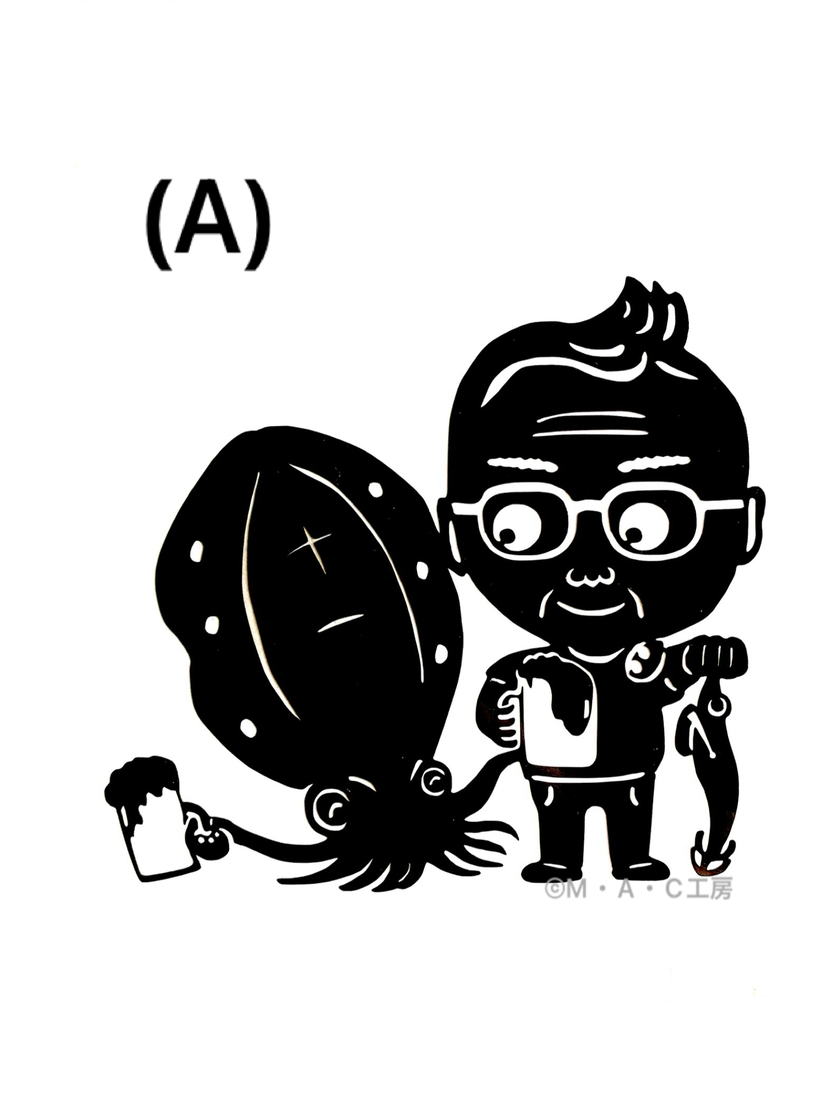 おやじ&アオリイカ (A)( 約 12× 12cm )